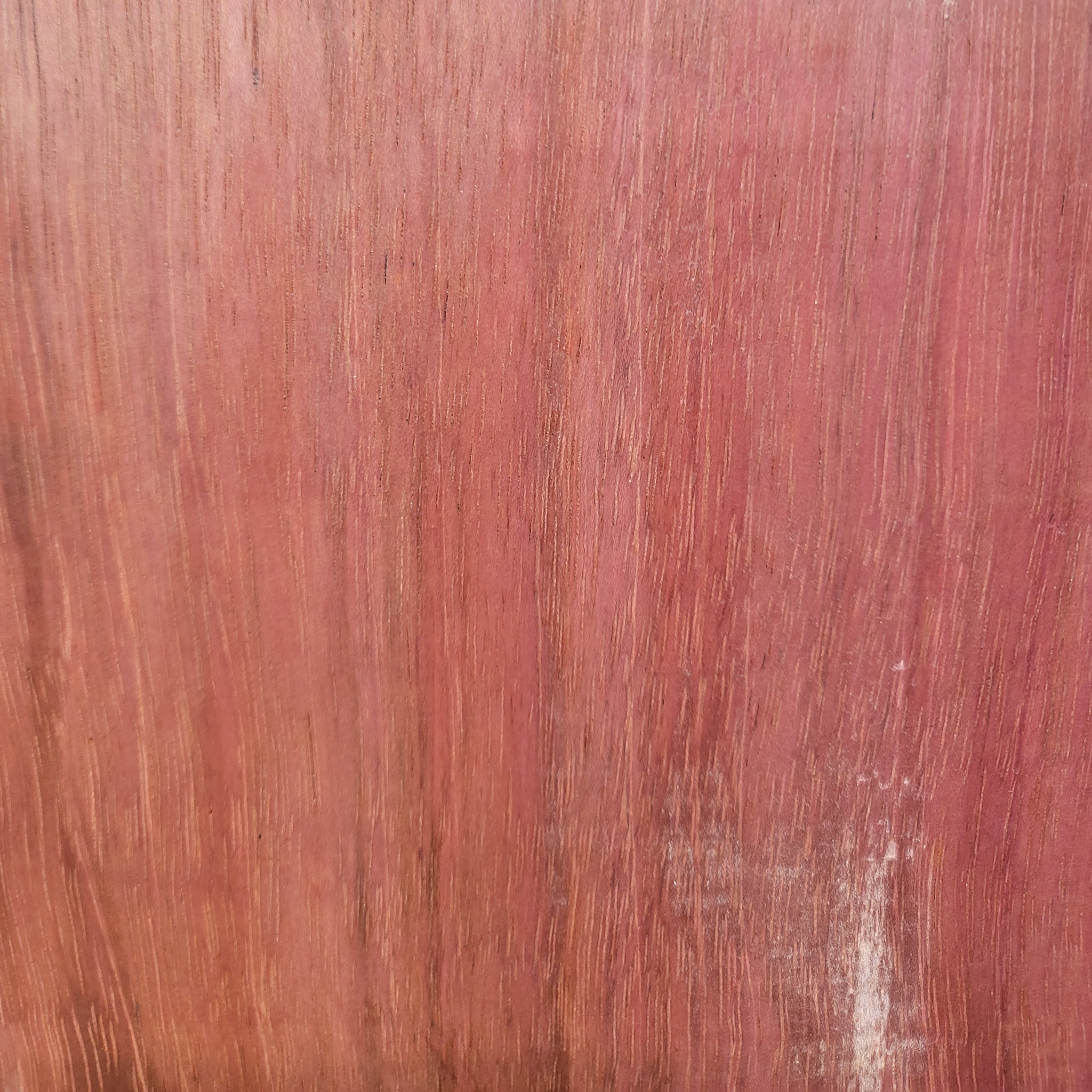 When freshly cut the heartwood of purpleheart can be a dull grayish/purplish brown. Upon exposure—usually within a few days—the wood becomes a deeper eggplant purple. With further age and exposure to UV light, the wood becomes a dark brown with a hint of purple. This color-shift can be slowed and minimized by using a UV inhibiting finish on the wood. The grain is usually straight, but can also be wavy or irregular. Has a medium texture with good natural luster.